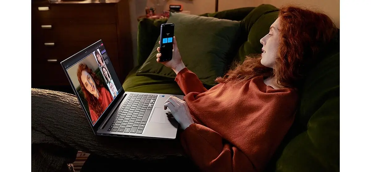Faça um upgrade em suas chamadas de vídeo, da webcam padrão do notebook para a nitidez impressionante do seu smartphone Samsung Galaxy como uma câmera conectada. Conecte-se ao seu Galaxy Book4, alterne entre as câmeras frontal e traseira para encontrar o ângulo perfeito e aproveite a imagem de alta qualidade com efeitos de vídeo avançados em aplicativos de vídeo.