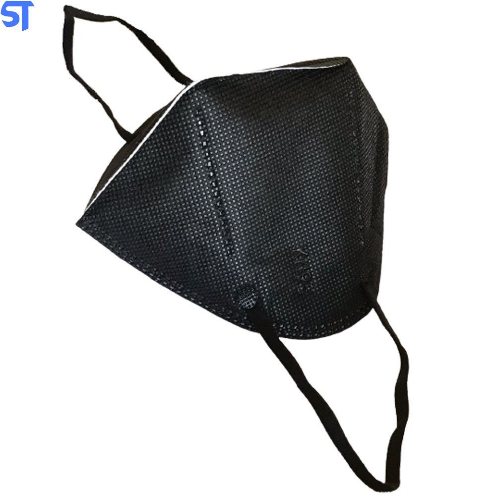 Possui 4 camadas.Composição: Confeccionado em quatro camadas, sendo: camada externa de fibra sintética de polipropileno; camada meio de fibras sintética estrutural; camada filtrante de fibra sintética com tratamento eletrostático, camada interna de fibra sintética de contato facial. Com tirantes de cabeça de elástico para sustentação da peça facial e tira metálica para ajuste sobre o septo nasal. Materiais atóxicos e hipoalergênicos. Cor: Preta.