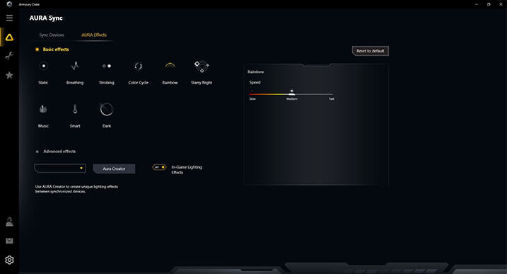 Armory Crate é um novo utilitário de software projetado para fornecer controle centralizado dos produtos suportados. A partir de uma única interface intuitiva, o Armory Crate permite personalizar facilmente a iluminação e os efeitos RGB para todos os dispositivos compatíveis no seu arsenal.