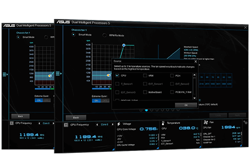 As placas-mãe ASUS Prime da Série 500, fornecem um controle abrangente sobre as ventoinhas do sistema, através do software Fan Xpert. O modo Auto-Tuning configura inteligentemente todos os parâmetros com um simples clique.