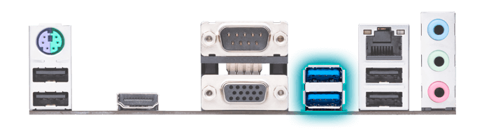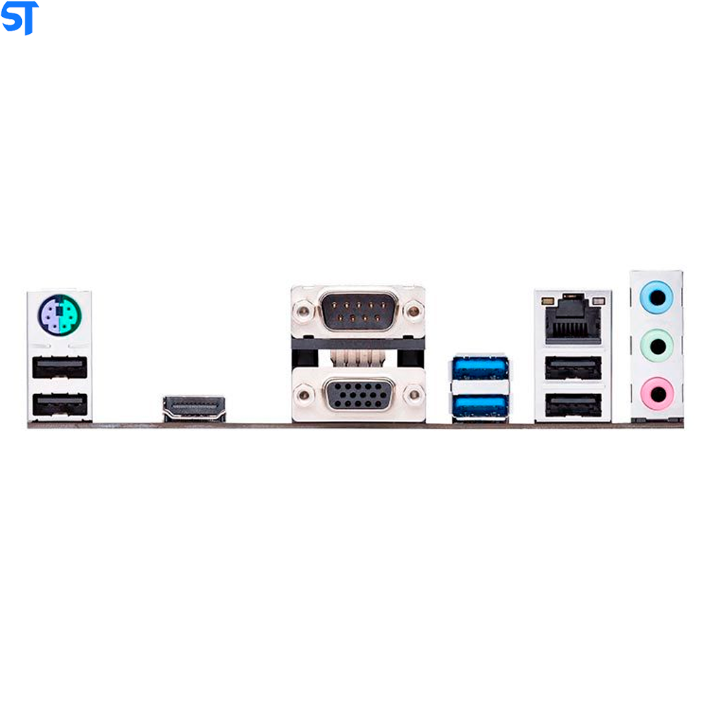 Painel Traseiro: | 2 x Portas USB 3.2 Gen 1 (2 x Tipo A) 4 x Portas USB 2.0 (4 x Tipo A) 1 x Porta D-Sub 1 x Porta HDMI ™ 1 x Porta Ethernet Intel ® I219-V 1 Gb 3 x Conectores de áudio 1 x Porta COM 1 x Porta combo teclado / mouse PS / 2 |