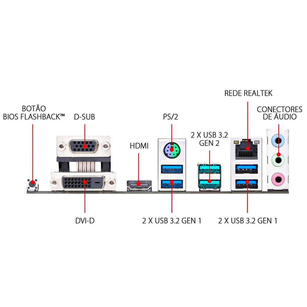 2 porta(s) USB 3.1 Gen 2 (2 no painel traseiro, )