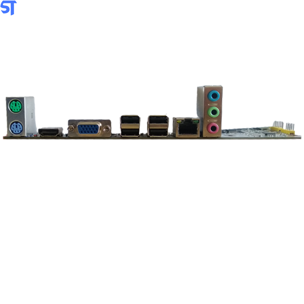 A placa mãe está equipada com o conjunto completo de portas de entrada e saída no painel traseiro, incluindo entradas para mouse e teclado USB, uma saída HDMI, uma saída D-sub (VGA), uma porta LAN RJ45, quatro portas USB 2.0 e jacks de áudio para microfone, line-in e line-out.