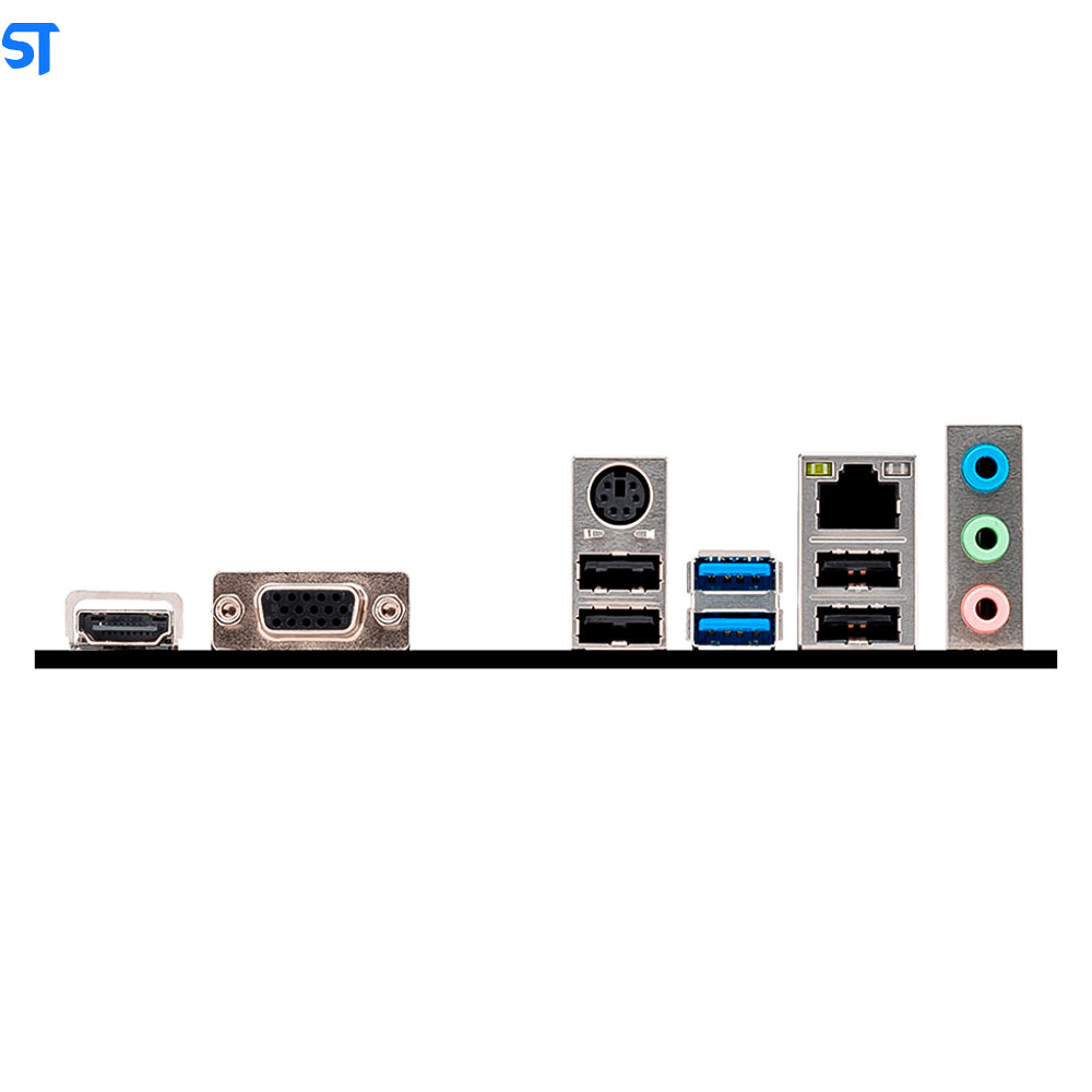Suporta processadores Intel® Core™, Pentium® Gold e Celeron® de 10ª geração para soquete LGA 1200 e possui 2 slots de memória RAM DDR4 com suporte para até 2933MHz.