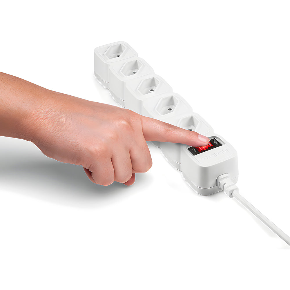 - Versatilidade e Conectividade: As 5 tomadas permitem que você conecte múltiplos dispositivos de maneira segura e organizada, sem a necessidade de várias extensões.