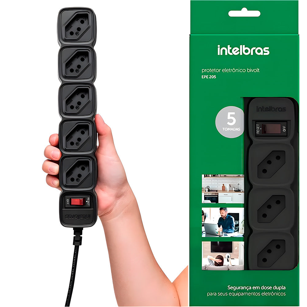 O Protetor Eletrônico Intelbras EPE 205 PT é a solução ideal para proteger seus aparelhos contra surtos de energia, picos de tensão e sobrecargas. Com um design compacto, funcionalidade eficiente e a qualidade Intelbras, ele oferece segurança e organização para o uso diário de equipamentos eletrônicos em casa ou no trabalho.