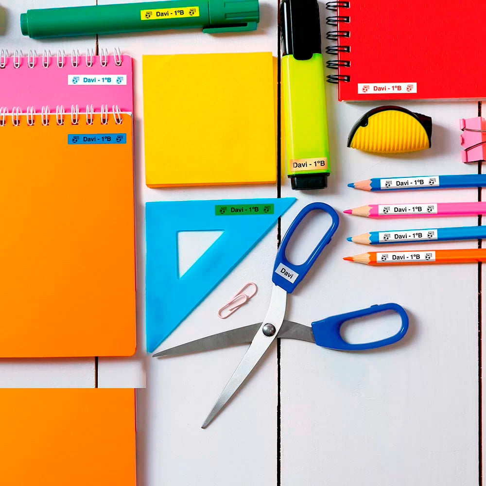 - Recursos do rotulador: Inserir texto, Desligamento automático, Impressão vertical