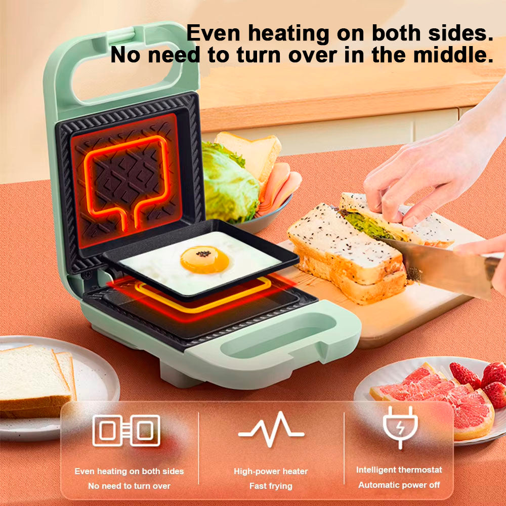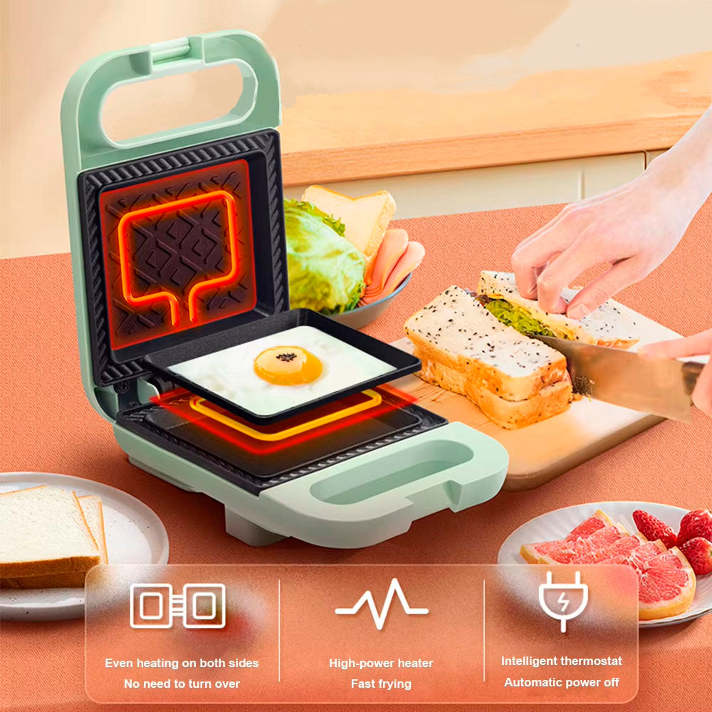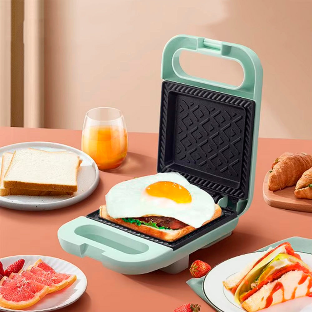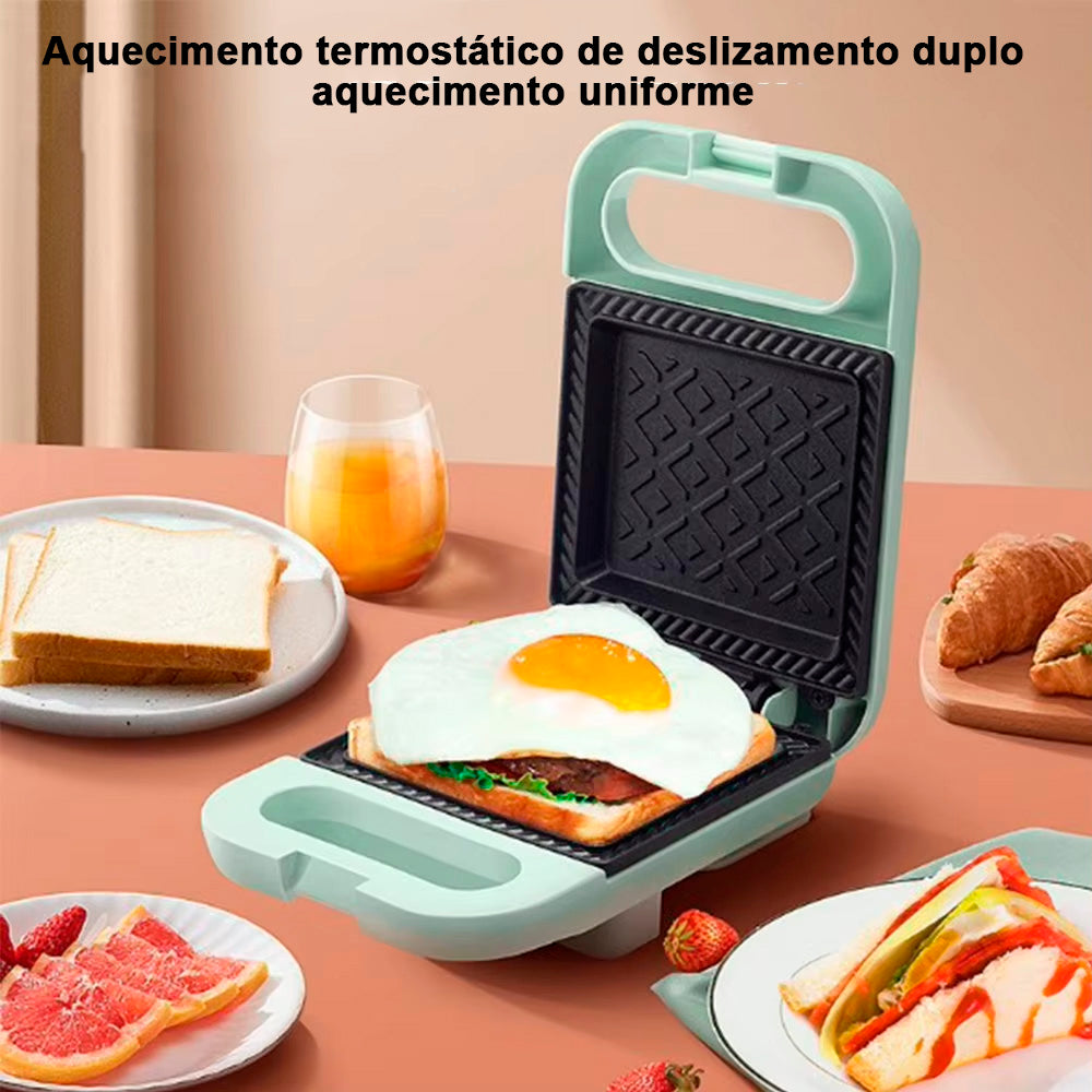 A Sanduicheira Elétrica Portátil é a solução perfeita para preparar lanches rápidos e deliciosos a qualquer hora do dia. Com um design compacto e moderno na cor verde claro, ela combina praticidade com estilo, sendo ideal para uso doméstico ou em ambientes de trabalho. Com 500W de potência, esta sanduicheira aquece rapidamente e oferece desempenho eficiente para preparar sanduíches crocantes e uniformemente tostados.