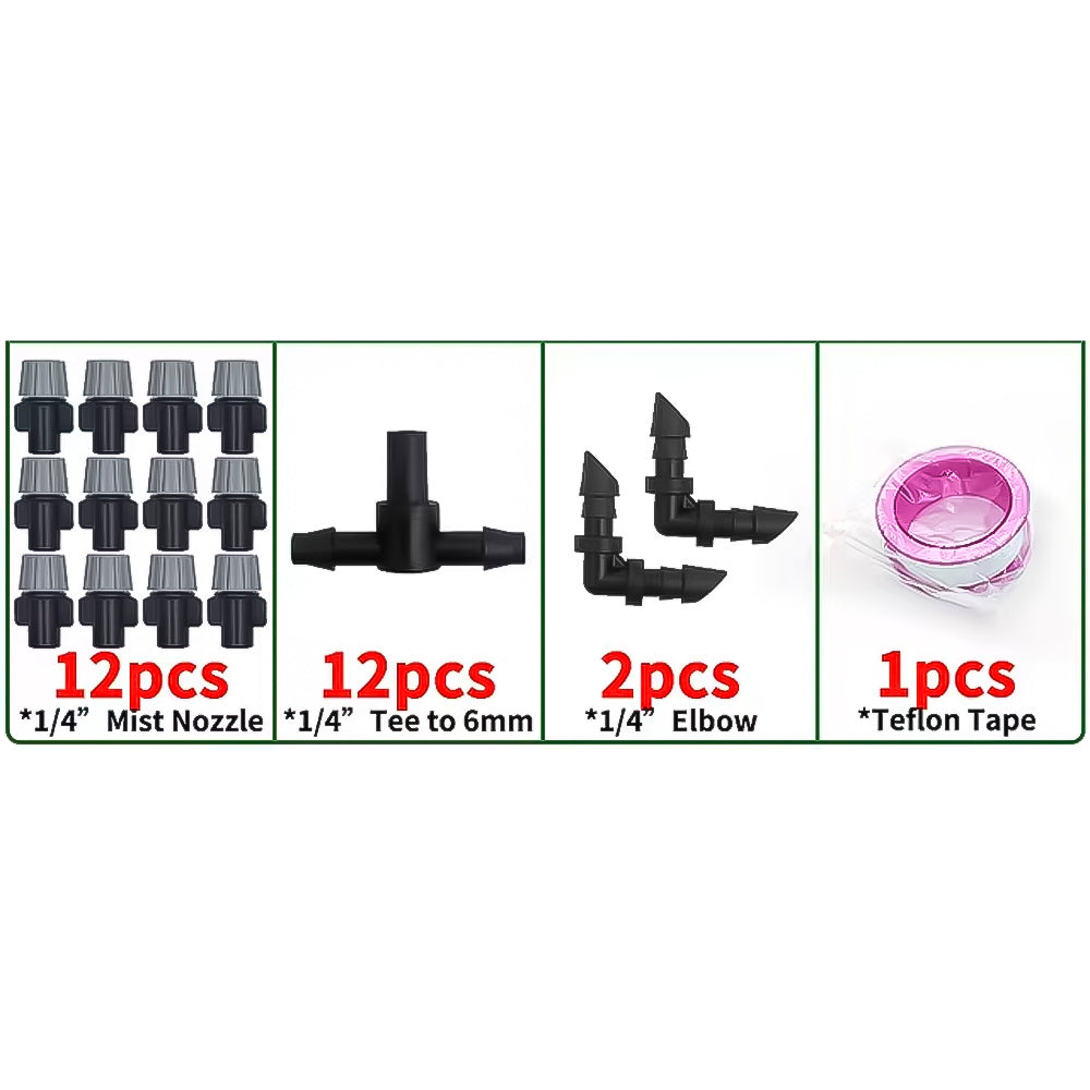 - Versatilidade: Além de ser usado para resfriar e irrigar jardins, o sistema também é perfeito para estufas, varandas, pátios e até mesmo para reduzir a poeira em ambientes externos.
