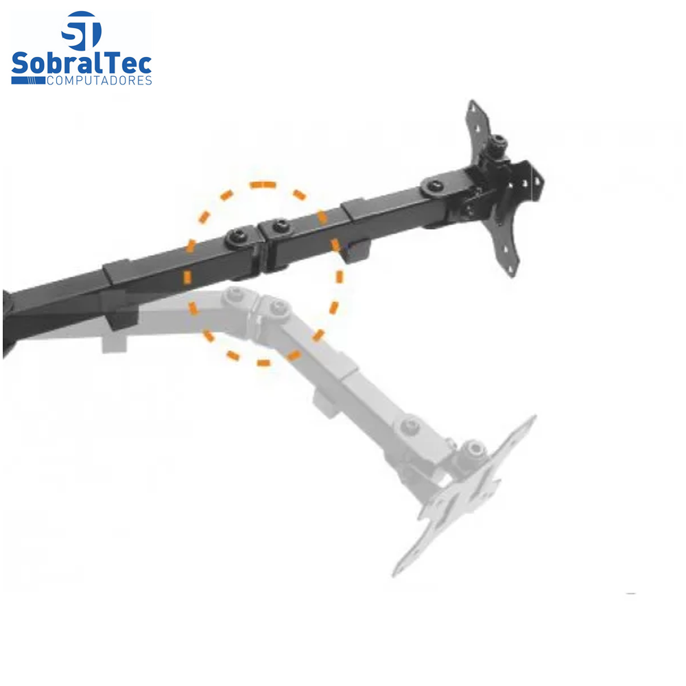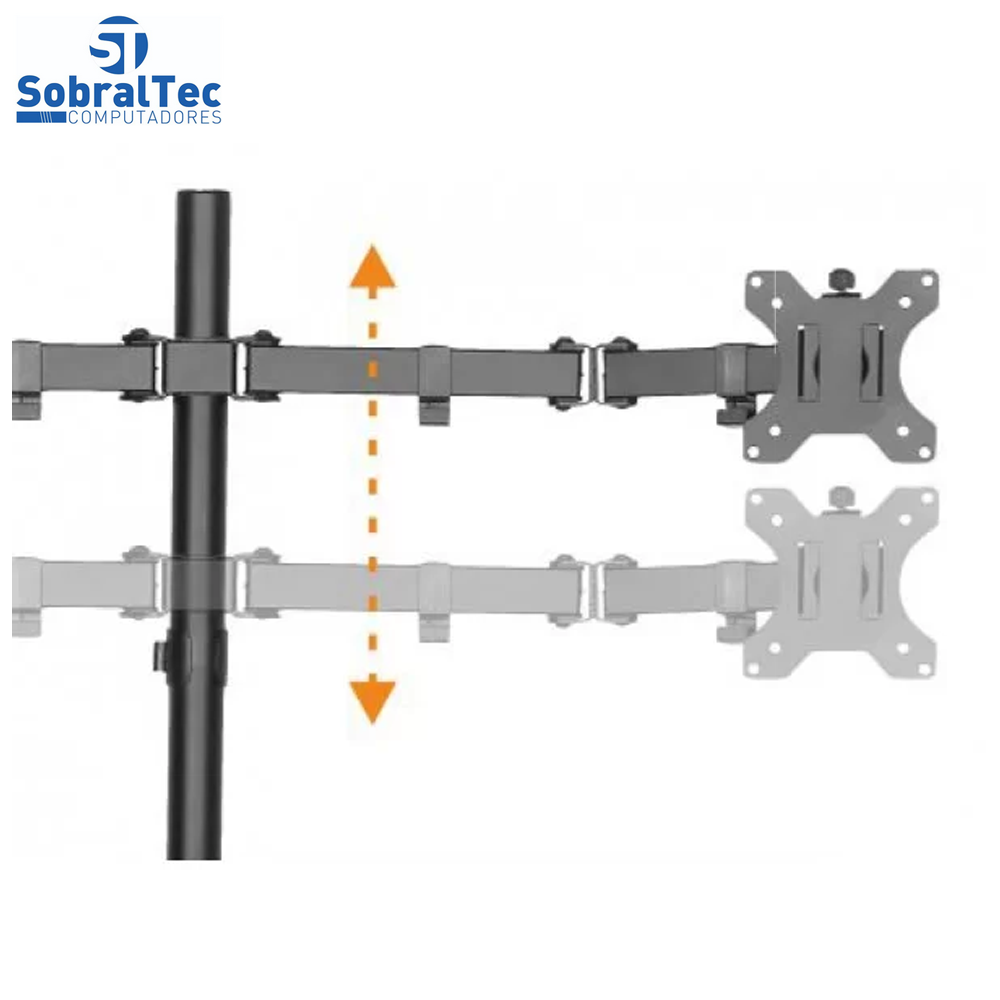 *** Pode atender monitores até 34 polegadas desde que tenham largura de até 78cm, peso até 8kg (cada) e VESA 75x75 ou 100x100mm.