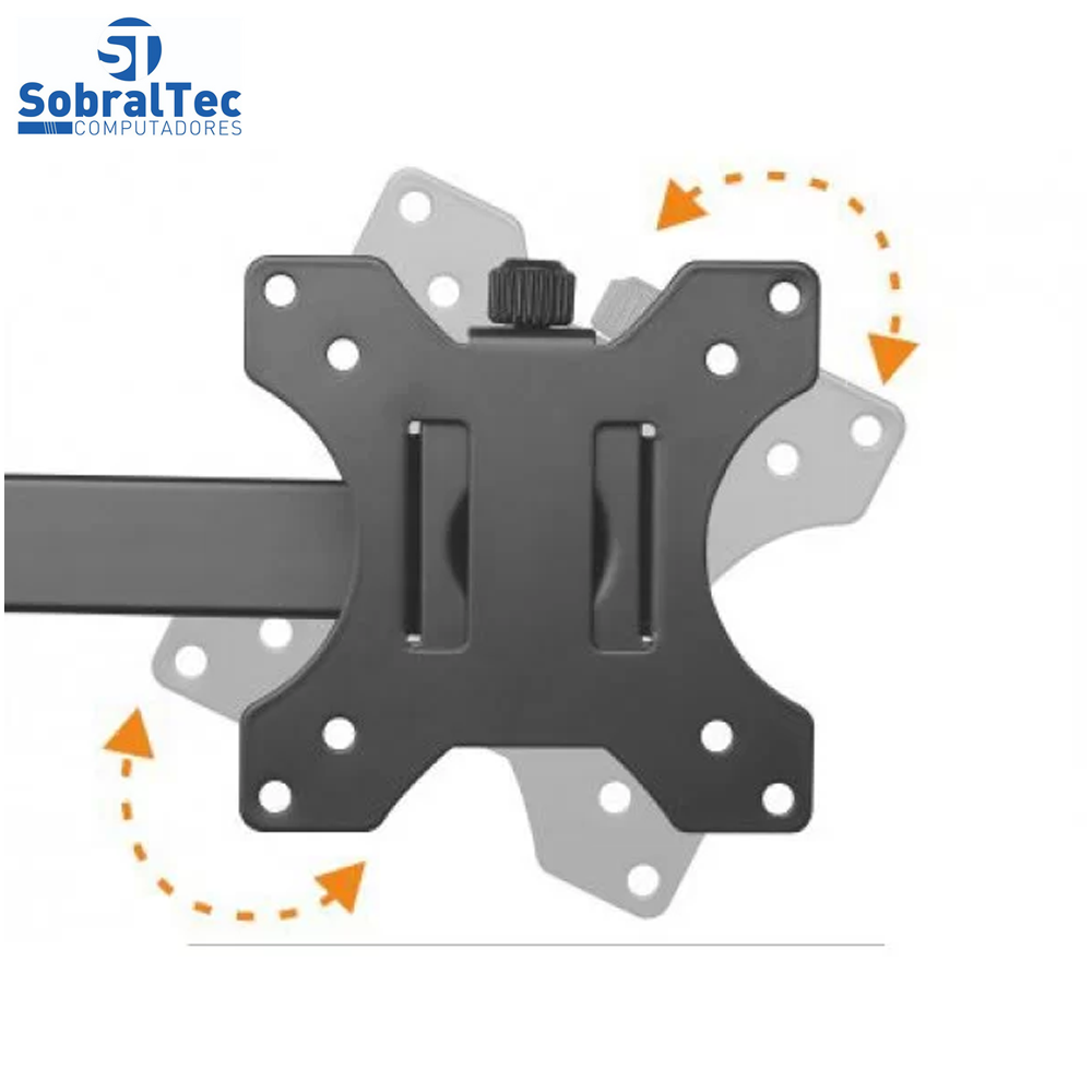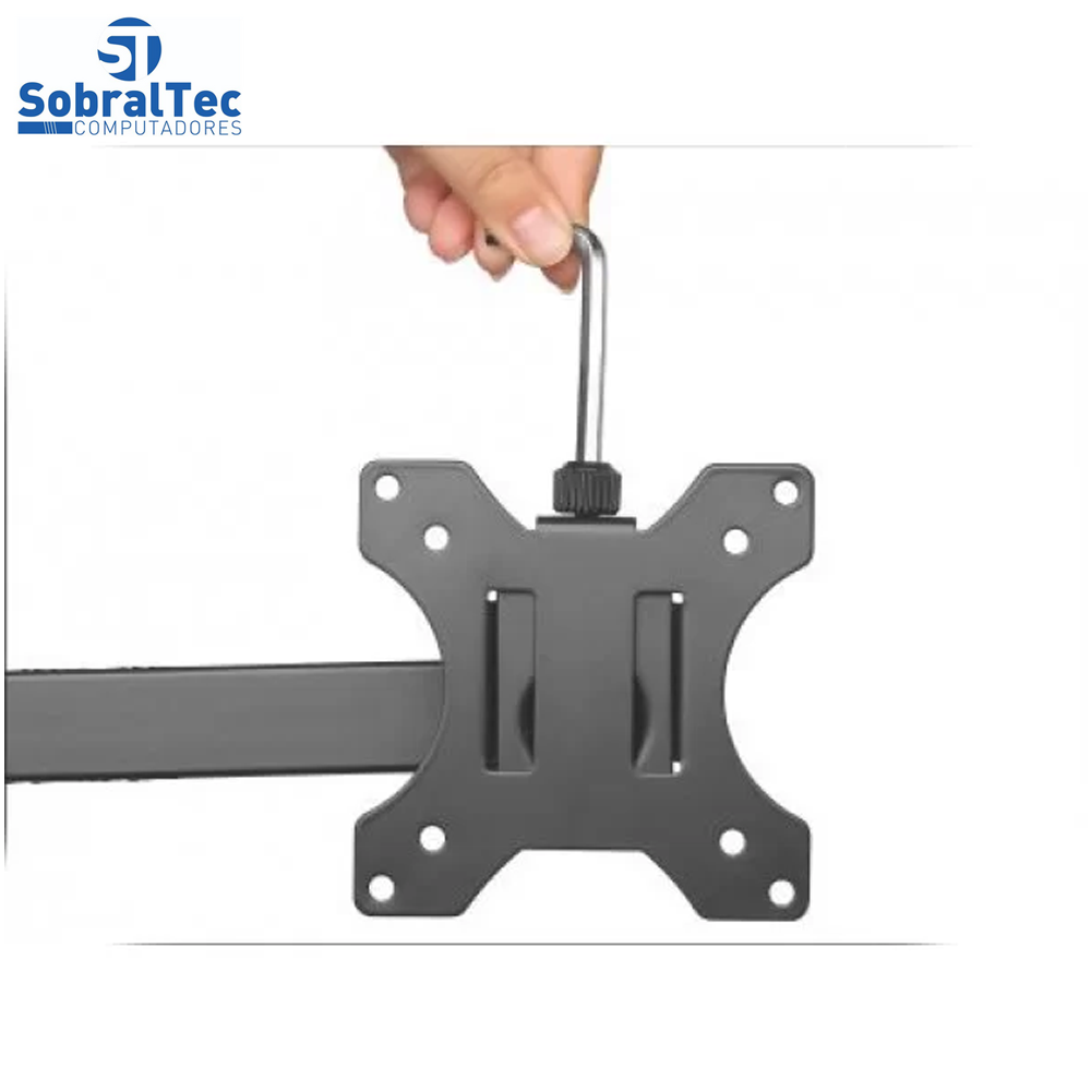 Indicado para telas de 15 a 32 polegadas com padrão de fixação VESA 75x75 ou 100x100mm (HxV) e com peso de até 8kg (cada tela).