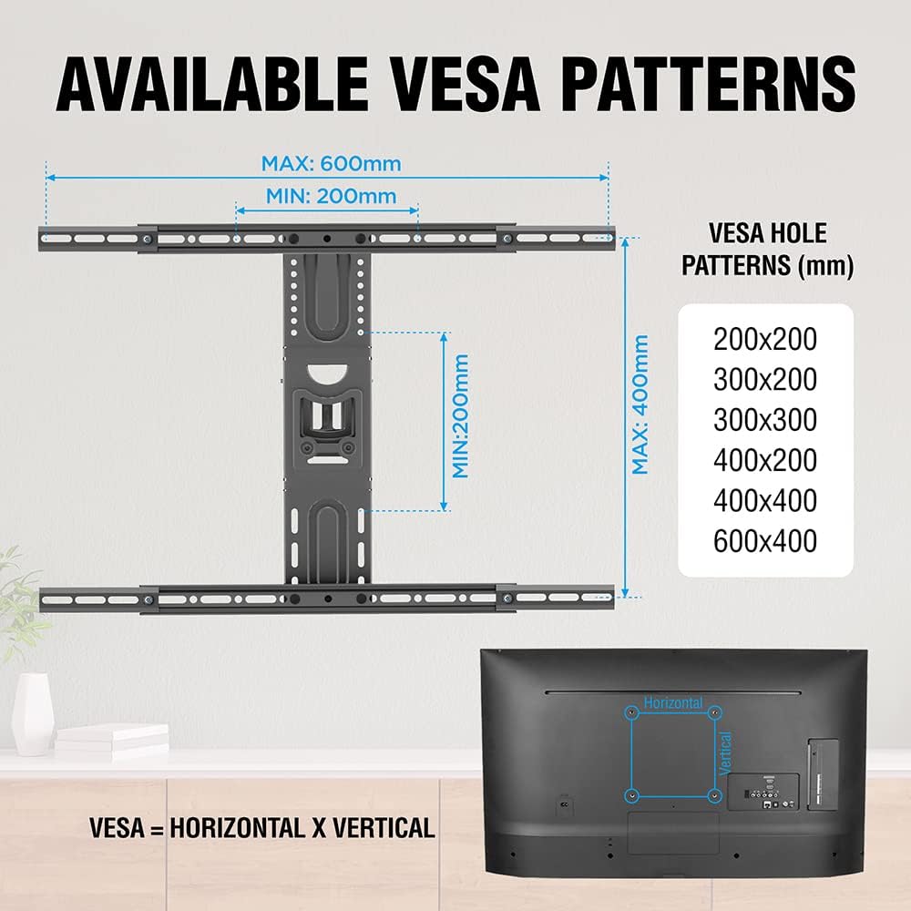 Este suporte se destaca por sua capacidade de articulação, permitindo ajustes precisos para atender às necessidades específicas do usuário. Com uma inclinação vertical que pode variar de -15° a +5°, ele oferece a flexibilidade necessária para encontrar o ângulo de visão ideal, reduzindo reflexos e melhorando a qualidade de imagem, independentemente da iluminação do ambiente. Além disso, sua capacidade de rotação horizontal de até 180° proporciona a possibilidade de direcionar a TV para diferentes áreas do espaço, permitindo uma visualização confortável de praticamente qualquer posição.