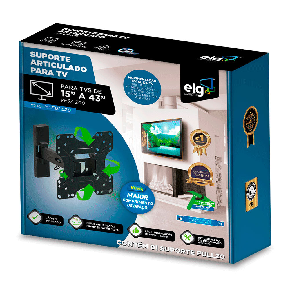 A ELG é uma marca renomada pela qualidade e inovação em suportes e acessórios para TVs. O Suporte Articulado FULL20 é a escolha ideal para quem busca praticidade, segurança e um visual moderno. Garanta a melhor experiência de visualização e a organização do seu espaço com este suporte versátil e robusto.