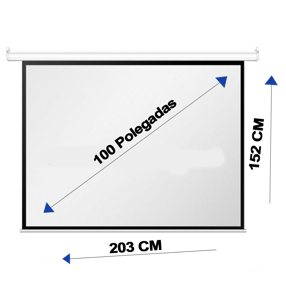 Tela de Projeção Retrátil Elétrica Com Suporte Metálico, 100 Polegadas 4:3 Largura 203Cm x Altura 152Cm TP-EH100A Exboom