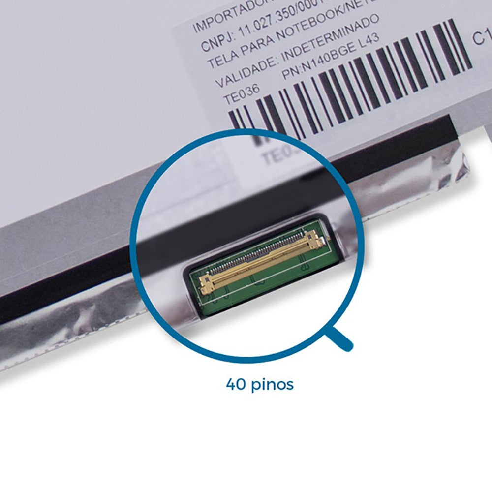 Tela Notebook LED Slim 40 Pinos 14.0" Pn 04W3364 Pn N140BGE-L43- WXGA HD