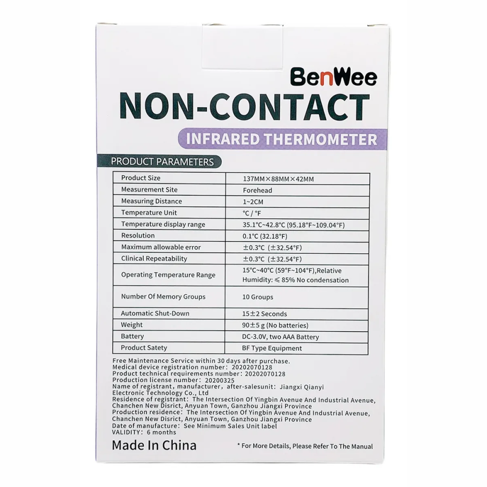 1. Termômetro BenWee Infravermelho Sem Contato (Modelo SHY-001)