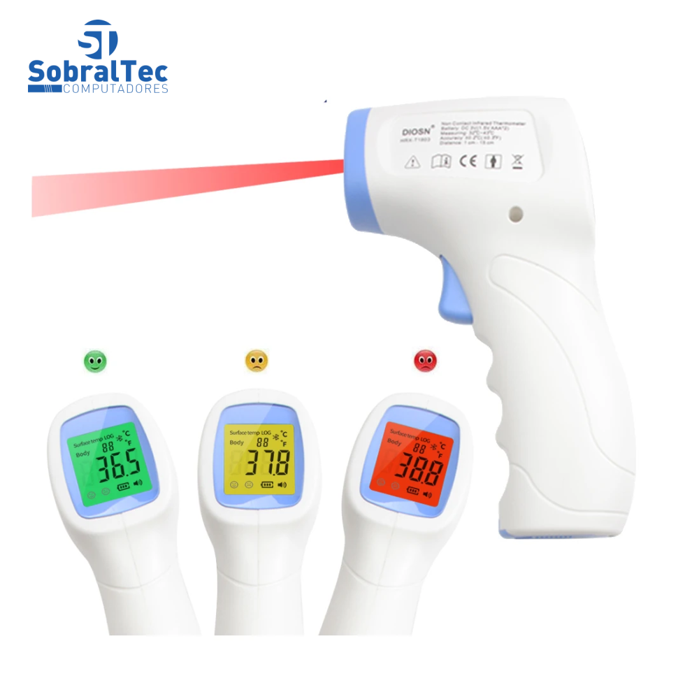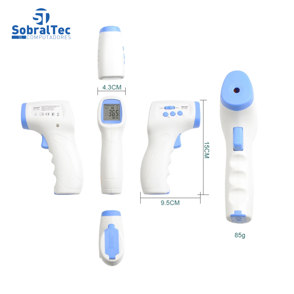 Termômetro infravermelho sem contato de uso profissional para humanos. Com sistema de alarme de alta precisão, desligamento automático de 10 segundos, o que pode estender a vida útil da bateria.