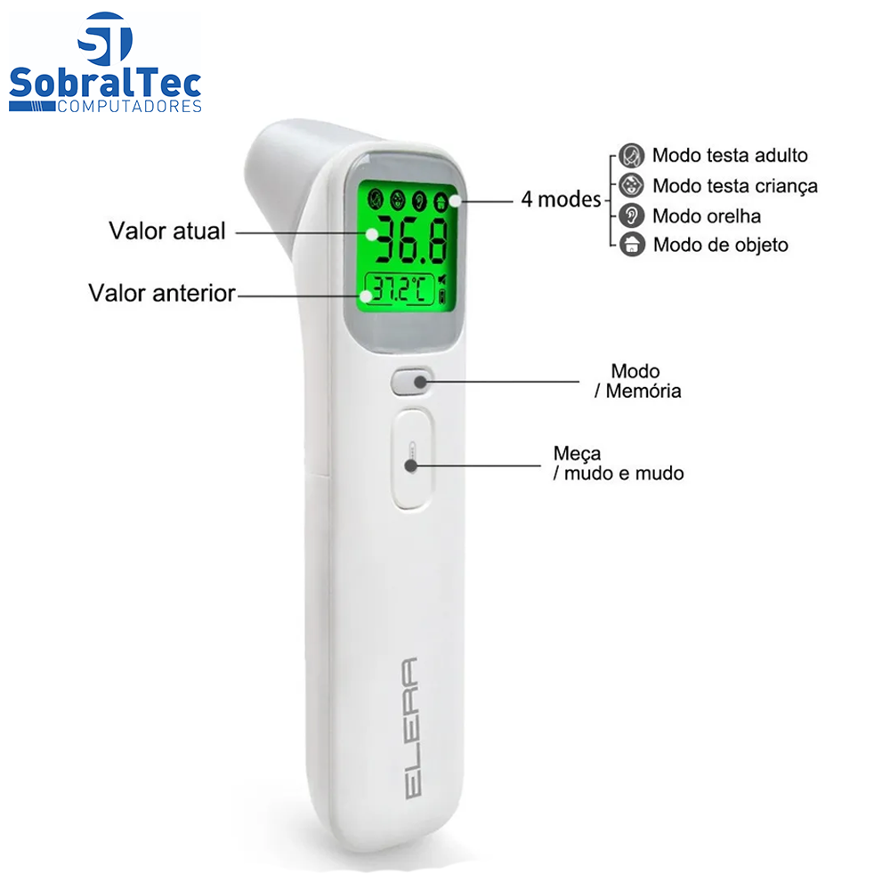 Compacto e de alta precisão, o termômetro portátil leve adota com sensor de temperatura infravermelho avançado que possui desempenho estável e confiável.